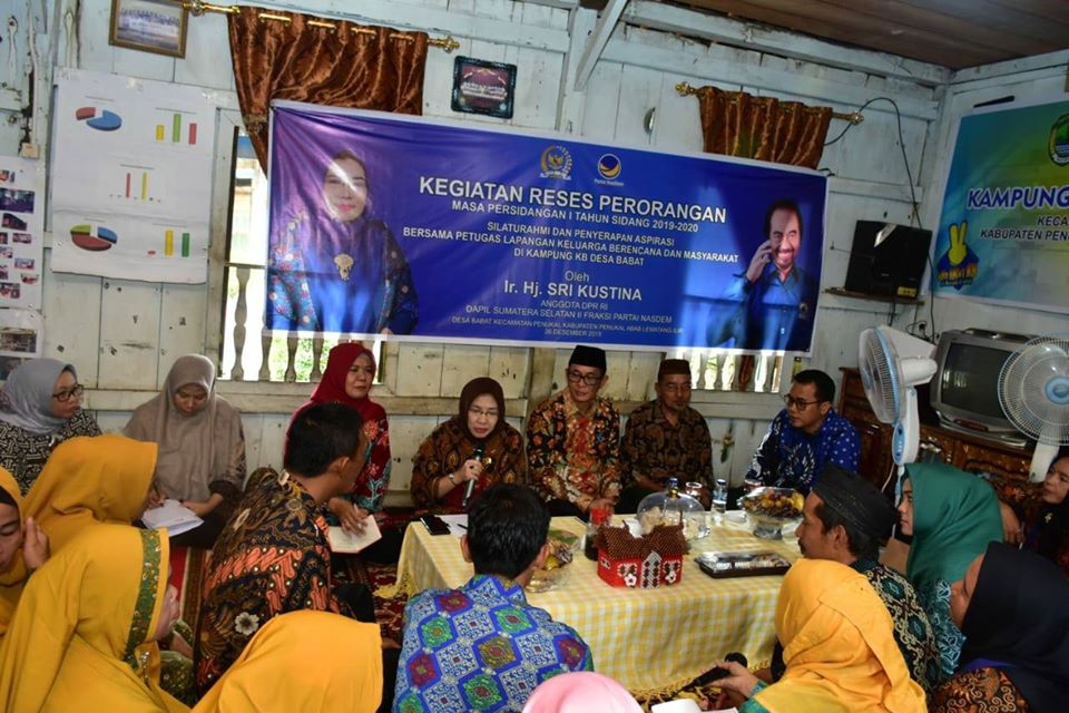 Dalam Rangka Mendampingi Kegiatan Reses Perorangan Masa Persidangan 1 Tahun Sidang 2019 - 2020 bersama Ir. Hj. SRI KUSTINA anggota DPR RI Dapil Sumatera Selatan II Fraksi Partai Nasdem dan Bupati Penukal Abab Lematang Ilir Ir.H.HERI AMALINDO.MM di Kampung KB Dusun I Desa Babat Kecamatan Penukal Kabupaten Abab Lematang Ilir. Kamis, 26 Desember 2019