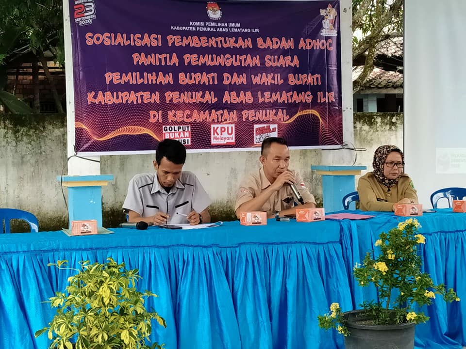 Kaur Umum Fierman Syah dan Kasi Kesejahteraan Subakti Mewakili Kades Desa Babat Arie MeiDiansyah Menghadiri Acara Sosialisasi Pembentukan Badan Adhoc Panitia Pemungutan Suara Pemilihan Bupati dan Wakil Bupati Kabupaten Penukal Abab Lematang Ilir Di kecamatan Penukal Selasa, 18 Februari 2020 Di kantor Camat Penukal Pukul : 14.00 Wib s/d selesai Kpu Kab Pali